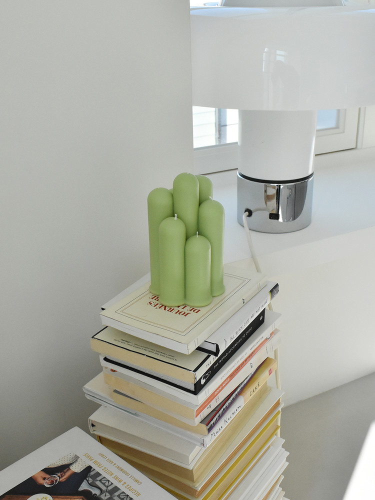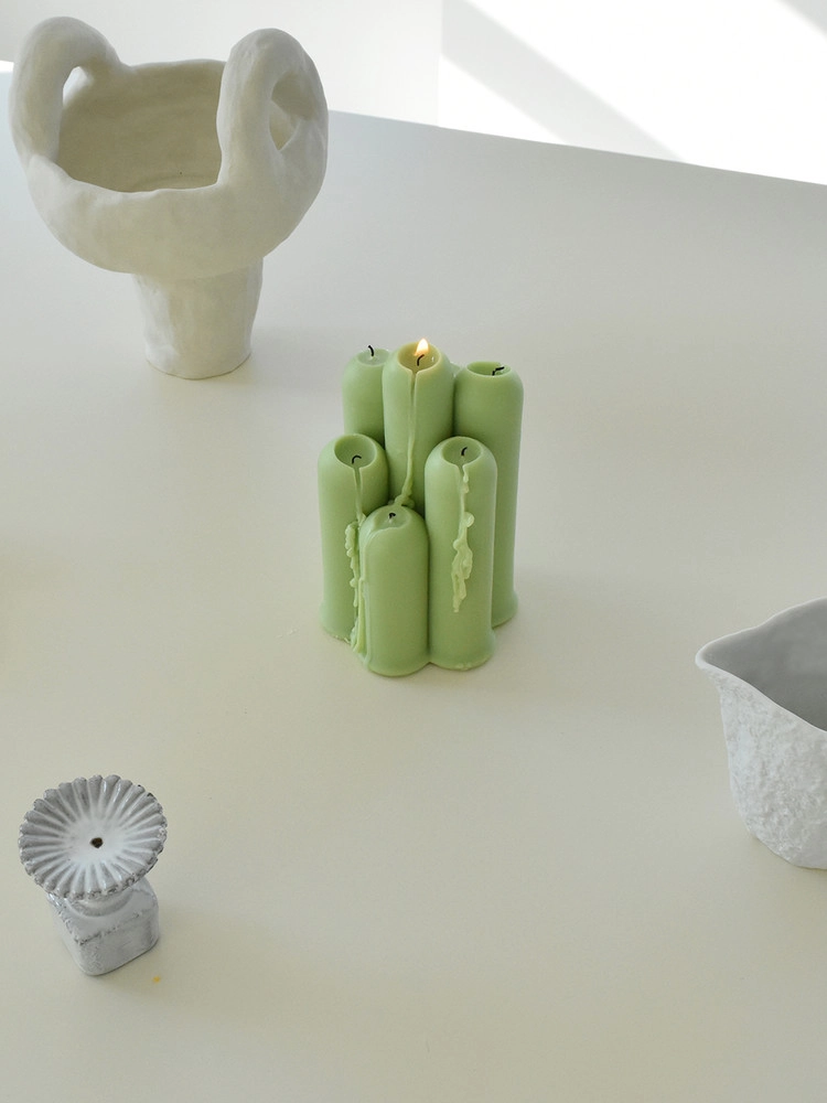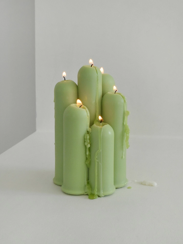 長さの異なる7つの柱を調和させて配置し、ユニークなデザインのキャンドルに仕上げました。